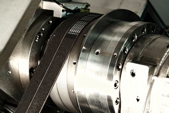 Details über Details geben den Ausschlag für eine Maschine, die ohne Unterbruch laufen sollte. Hier noch eines: Der Motor ist wegen der Erwärmung so weit weg wie möglich von der Spindel und wird über einen Riemenantrieb angetrieben.