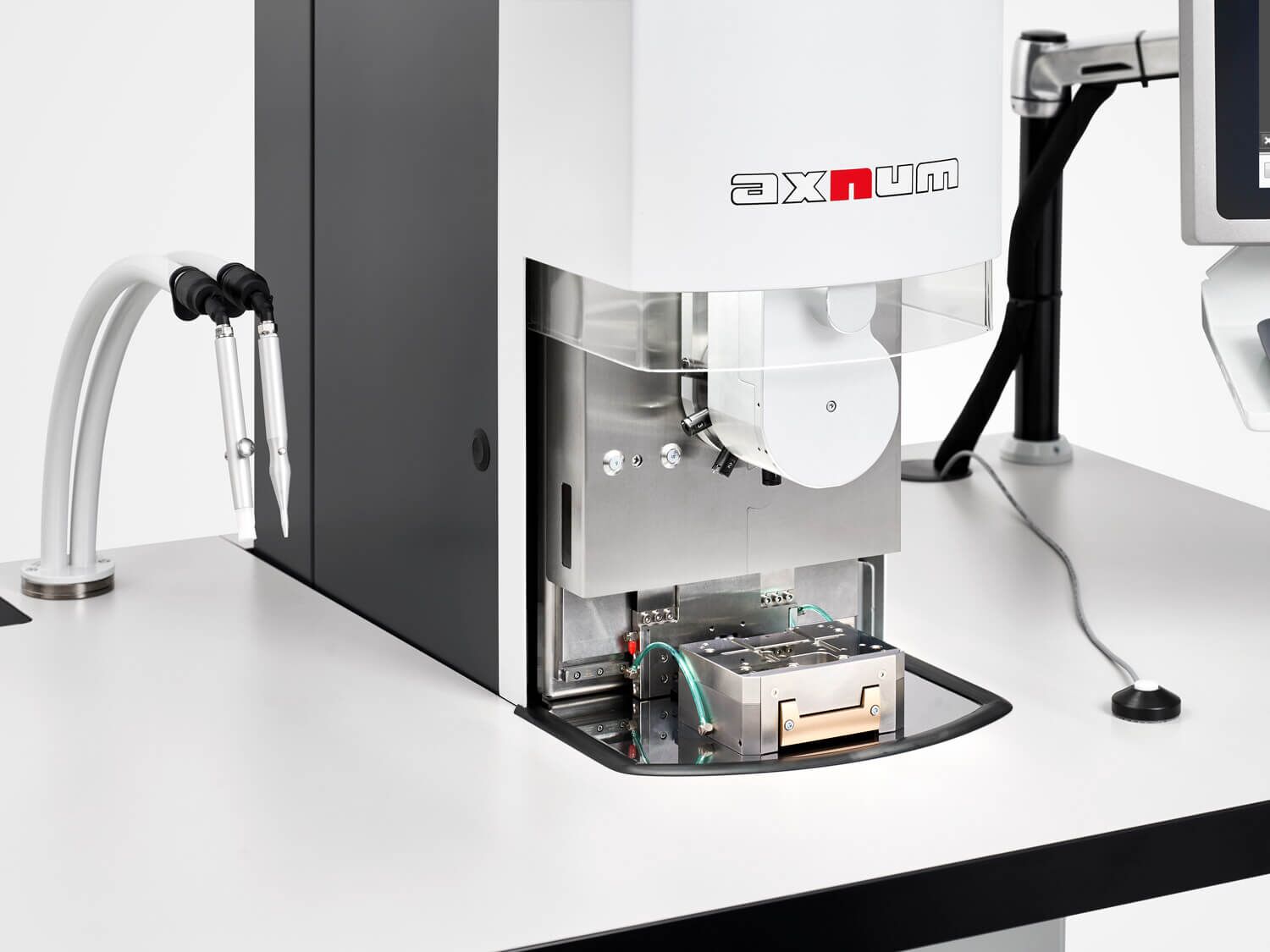 Dank des Revolver-Werkzeugwechslers mit 9 Positionen müssen die Einstellungen nicht bei jedem Serienwechsel erneut vorgenommen werden. Ein innovativer Ansatz zum Referenzieren gleicht Mass- und Toleranzketten aus. Ein integrierter Messtaster korrigiert auch Höhenfehler, die beim Setzen der Steine auftreten könnten (Verformung der Teile). Die Handarbeitsplätze von Axnum sind für den Einsatz mit zwei Werkstückaufnahmen optimiert. Die erste Aufnahme wird in der Maschine verwendet und die zweite befindet sich in den Händen des Bedieners oder der Bedienerin.