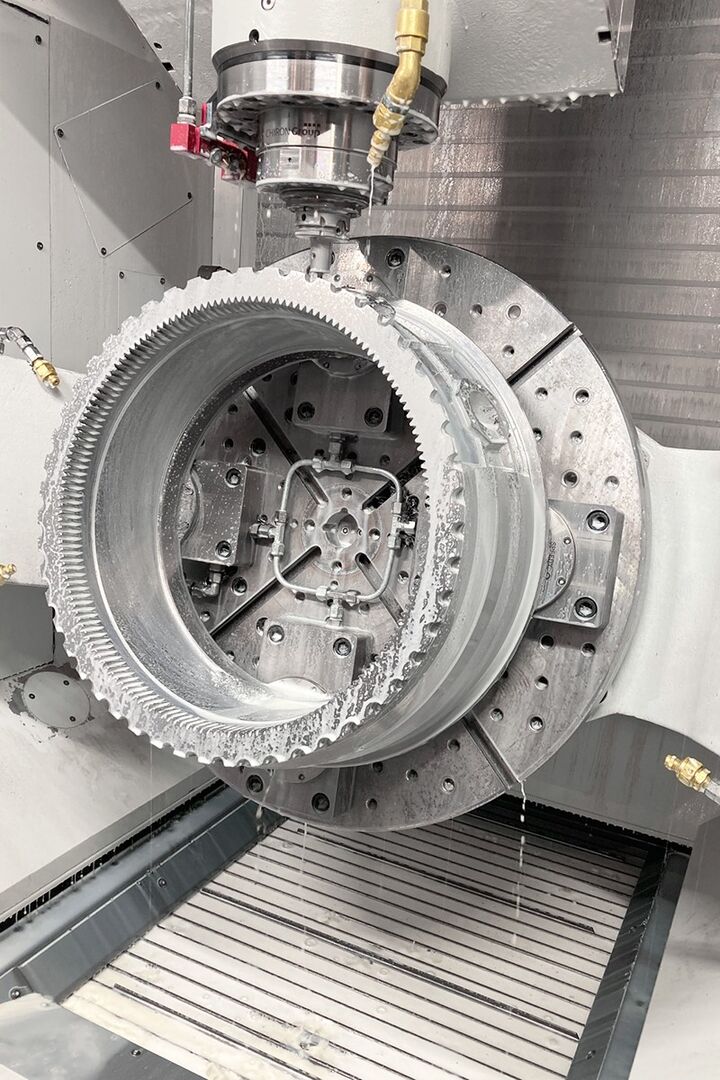 Für Anwendungen mit hochfesten Werkstoffen zeigte Chiron das Bearbeitungszentrum FZ 19 S five axis. Im Liveprozess wurde ein komplettes Turbinengehäuse gefertigt – inklusive Grobzerspanung, Drehen, Skiving, Bohren und 5-Achs-Simultanfräsen. Die Gantry-Bauweise und aktive Komponenten-Kühlung sorgen für maximale Prozessstabilität auch bei langen Zykluszeiten.