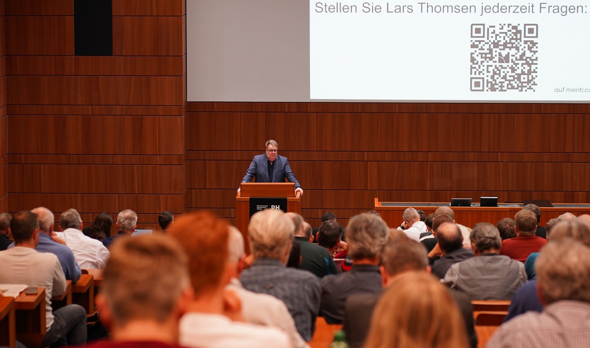 Die technologischen Megatrends sind global. Doch wie kann sich die Schweiz in diesem Wettbewerb behaupten? Thomsen leitete in seinem Vortrag sieben spezifische Chancen ab. Sie gehen weit über das blosse Konsumieren von Technologie hinaus.