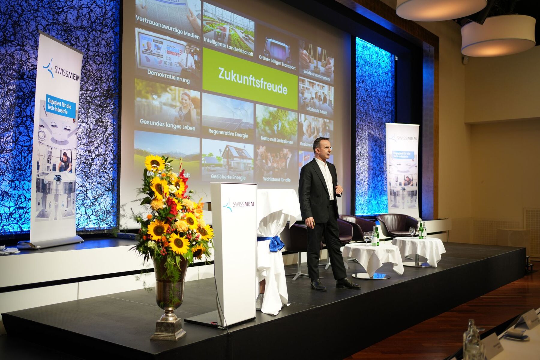 Das Swissmem-Symposium 2025 stand unter einem doppelten Vorzeichen. Einerseits die nackten Zahlen: Exporte rückläufig, Zölle von 39 Prozent auf dem US-Markt, Einbrüche in Schlüsselbranchen. Andererseits die Haltung, die an diesem Tag beschworen wurde: «Zukunftsfreude». Ein Wort, das vielen im Saal erst einmal ungewöhnlich vorkam. Doch das in einem der Vorträge erwähnte Wort zog sich (fast) wie ein roter Faden durch die Diskussionen – als Gegengift gegen die lähmende Unsicherheit der Gegenwart.