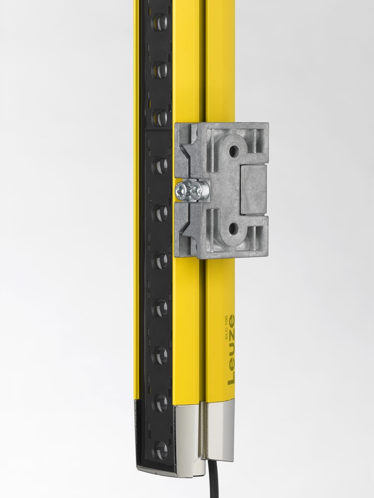 Dank ihres einfachen mechanischen und elektrischen Aufbaus sind die Geräte schnell installiert. Die Halter mit Schwenkfunktion werden einfach in den Nuten der Sicherheits-Lichtvorhänge ELC 100 montiert. Praktisch: Die Multi-Level-Ausricht-Anzeige erlaubt eine schnelle und optimale Ausrichtung der Geräte.
